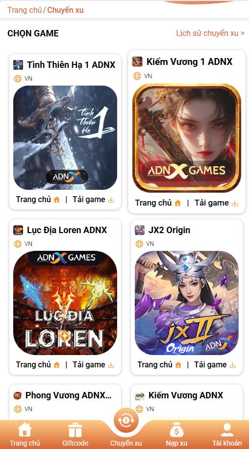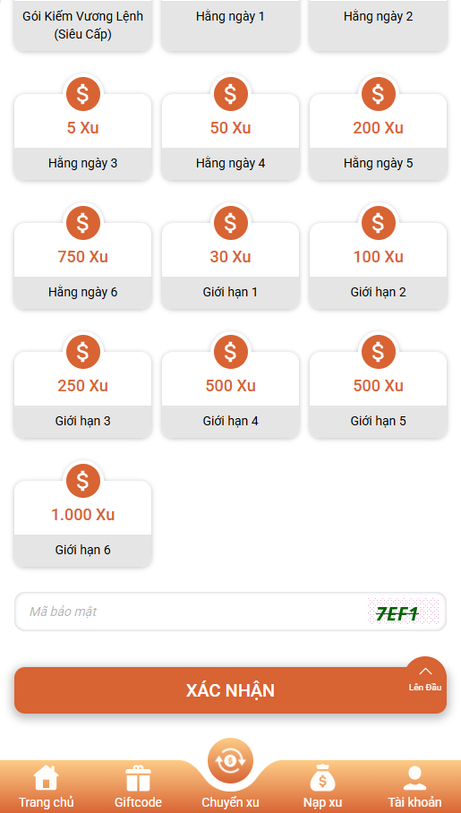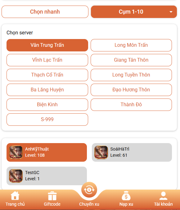 Bước2: Chọn chuyển xu -> Kiếm Vương 1: