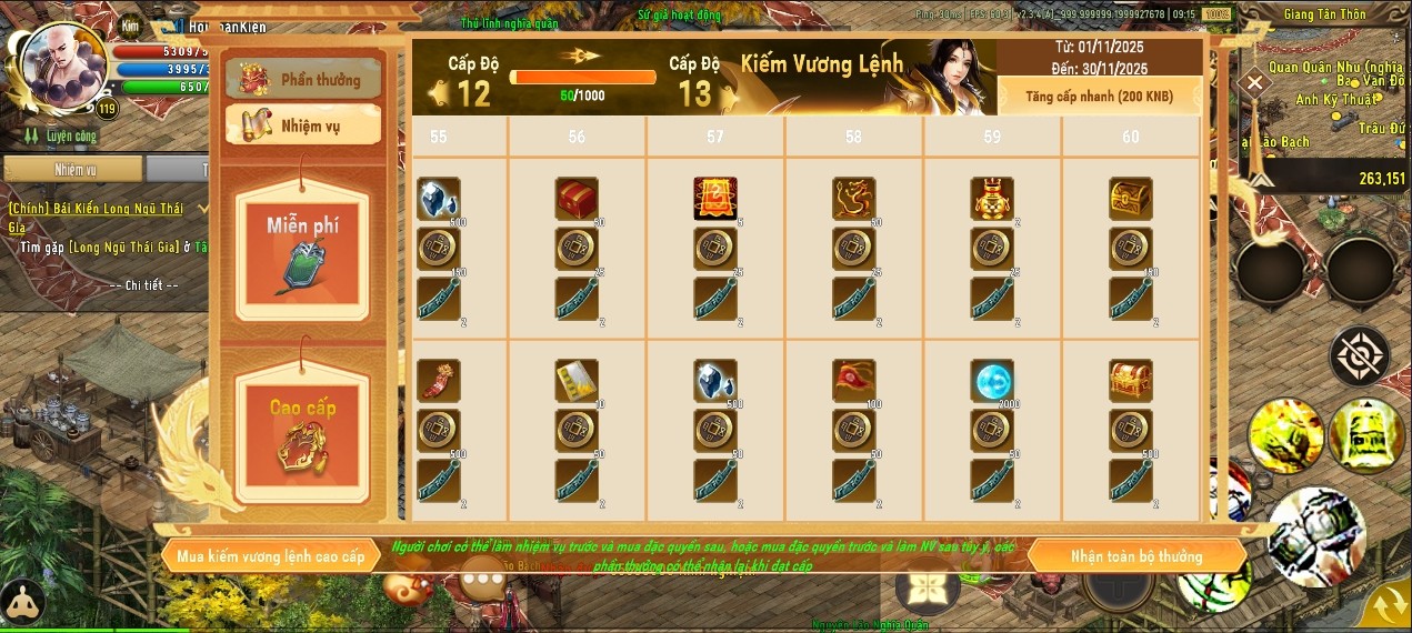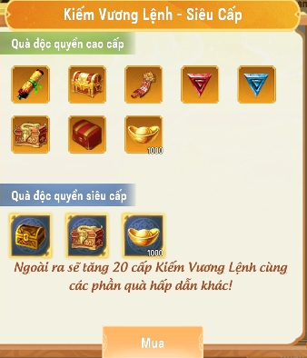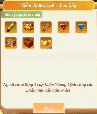 Cung cấp phần thưởng ở mỗi cấp độ, giá trị hơn nhiều so với Kiếm Vương Lệnh thường