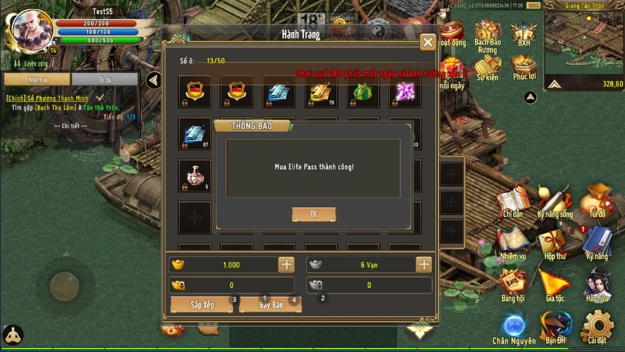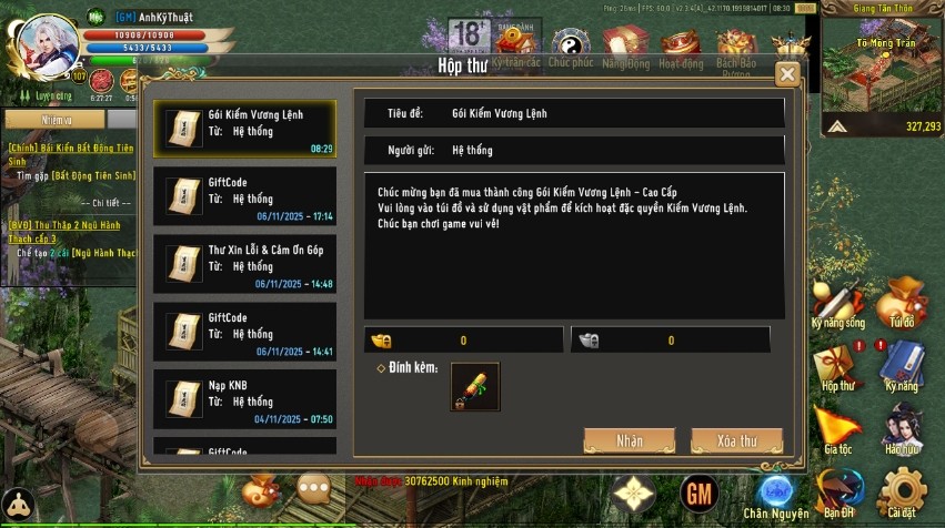 Bước 6: Kiếm Khách đăng nhập vào game để nhận thư ingame và tiến hành kích hoạt