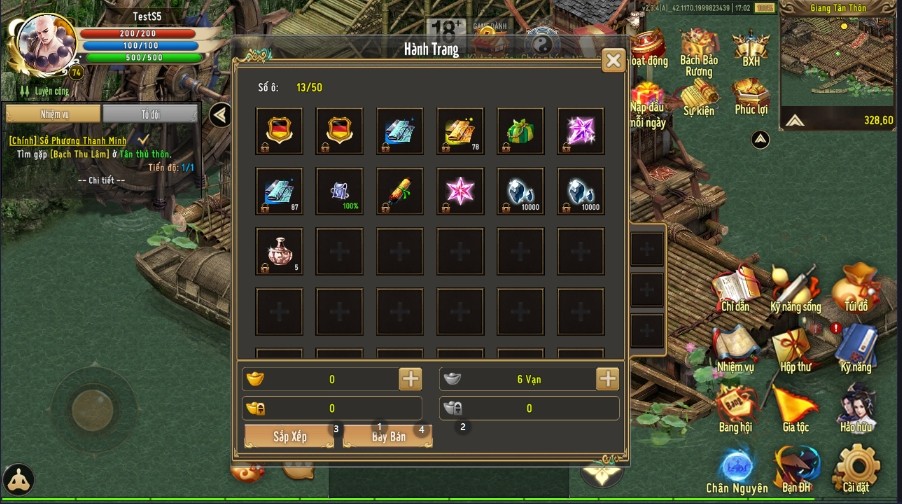 | Cấp 5 | 01 Càn Khôn Phù | 50 Tiền cổ năng động | 02 x Bạc Khóa Liên Server (10 vạn) |