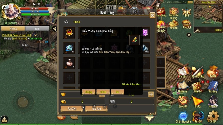 | Cấp 13 | 500 tinh hoạt lực | 20 Tiền cổ năng động | 02 x Bạc Khóa Liên Server (10 vạn) |