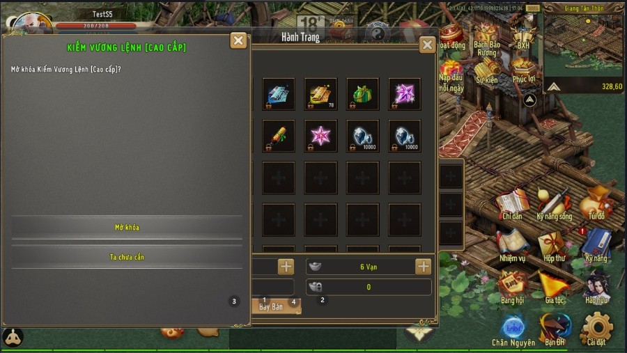 | Cấp 55 | 01 Bùa may mắn đồng hành (Thần cấp) | 500 Tiền cổ năng động | 02 x Bạc Khóa Liên Server (10 vạn) |