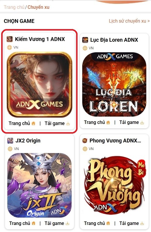 Bước 3: Chọn trò chơi Kiếm Vương 1