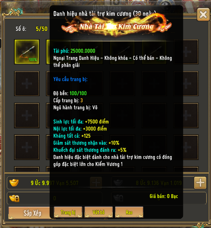 - Chỉ cần đăng nhập ingame, các Kiếm Khách sẽ nhận được thông báo đến NPC Dã Luyện Đại Sư để nhận lại trang bị Danh Hiệu của mình