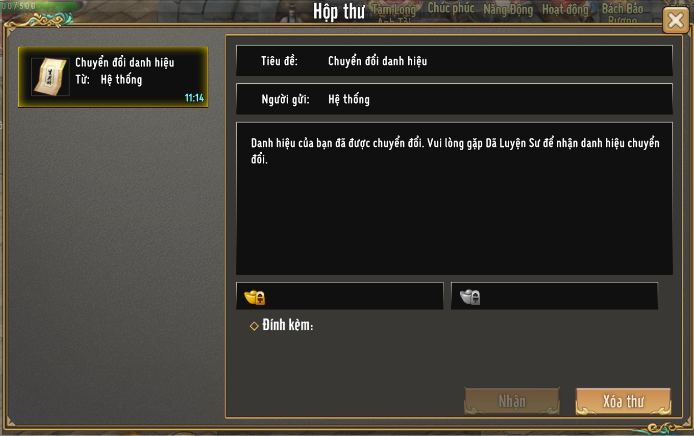- Kèm với đó sẽ là thông báo qua thư ingame.